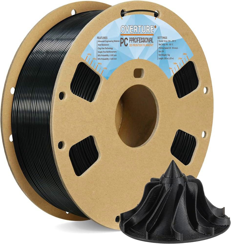 پلی کربنات (PC) یک ترموپلاستیک مهندسی پیشرفته با خواص مکانیکی عالی است و قوی ترین فیلامنت چاپ سه بعدی محسوب می شود. این ماده دارای استحکام بالا و دمای انتقال شیشه ای 150 درجه سانتیگراد است که آن را برای کاربردهای با دمای بالا ایده آل می کند. با این حال، PC باید در دمای بسیار بالا تا 310 درجه سانتیگراد چاپ شود. این ماده بسیار رطوبت‌ پذیر است و به راحتی رطوبت را جذب می‌کند. سپس این رطوبت می تواند باعث ایجاد نقص در قطعه چاپی شود. سایر ویژگی های کلیدی PC عبارتند از: